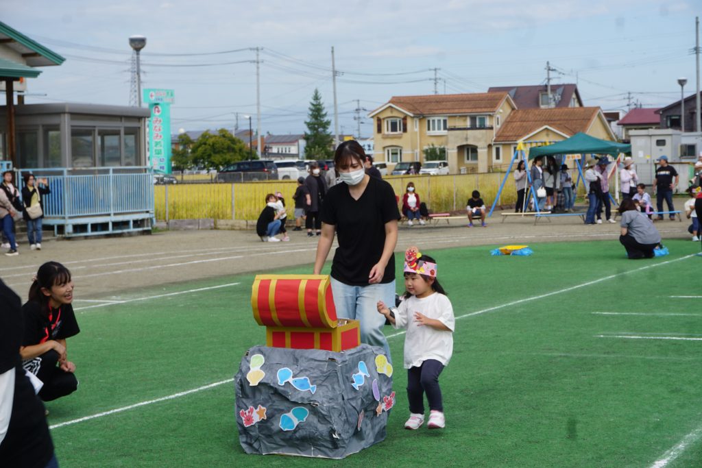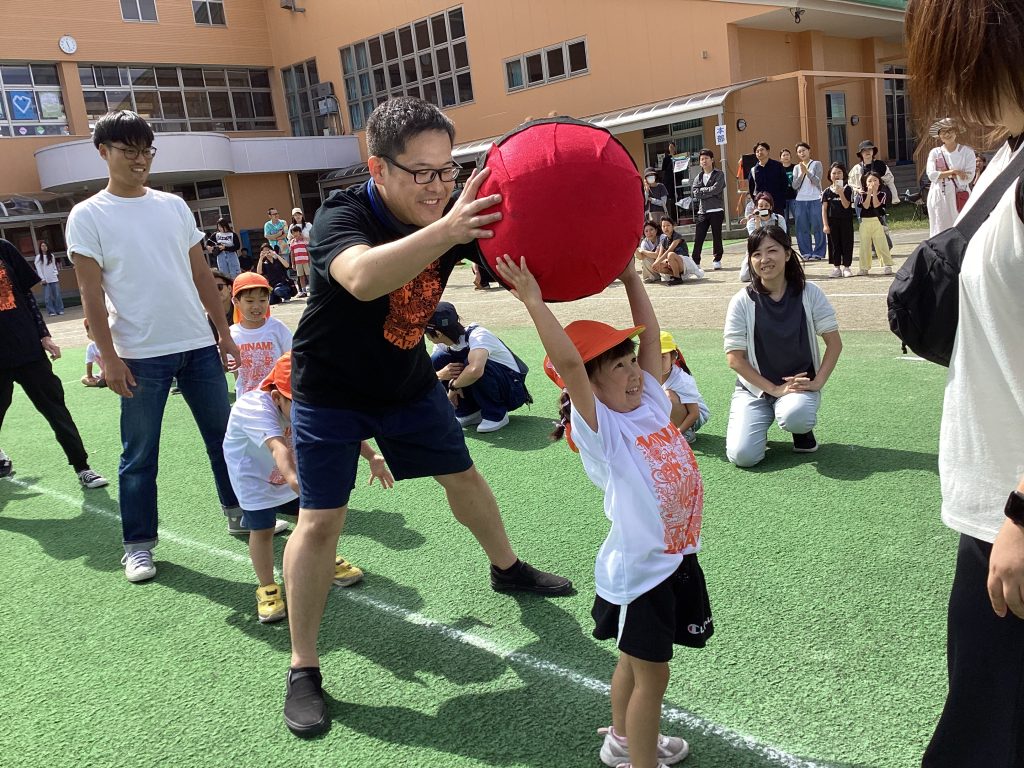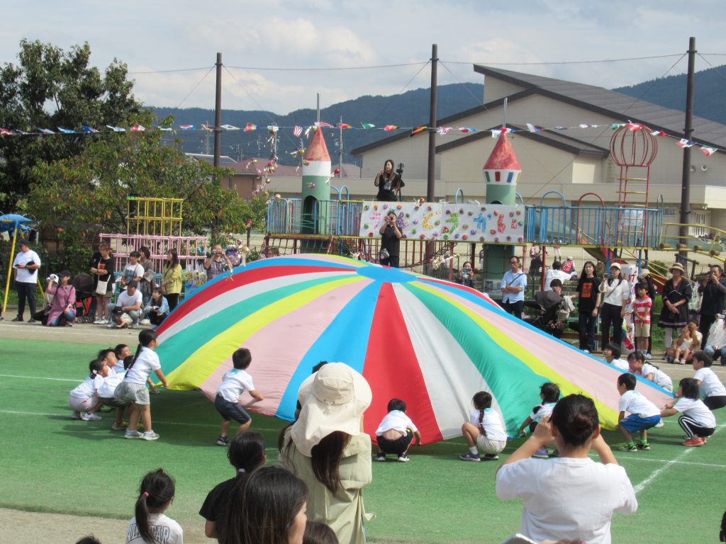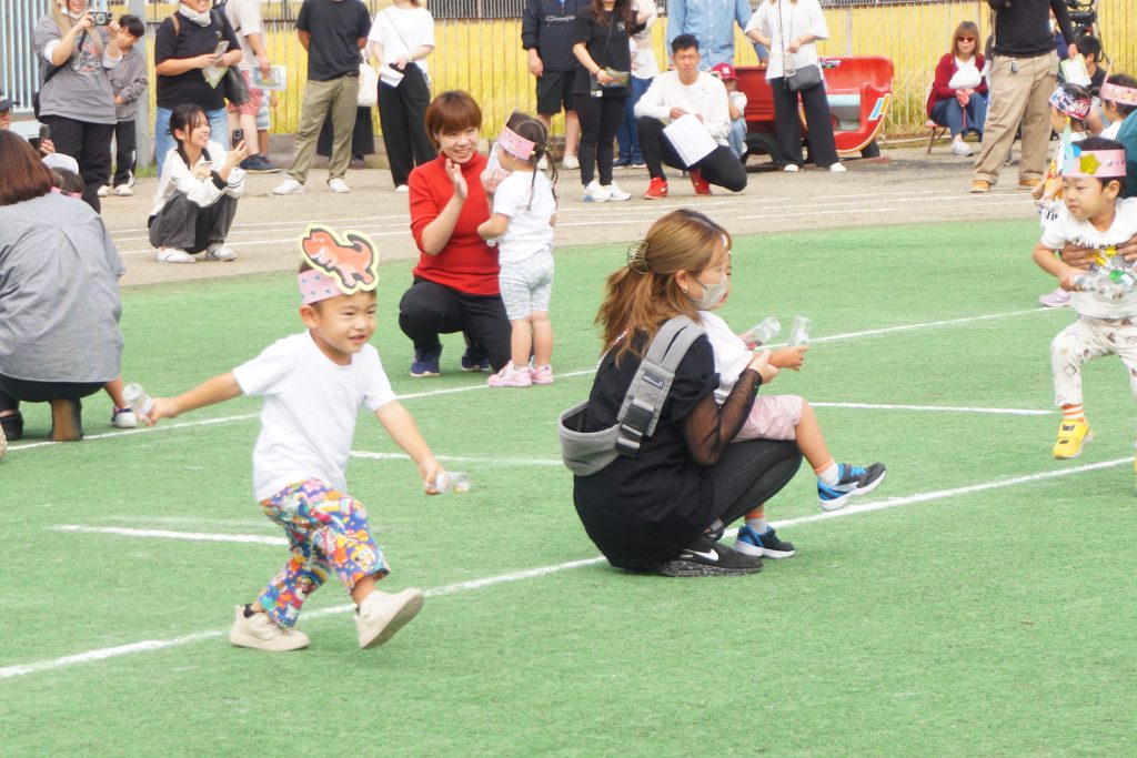 第2部は4・5歳クラスの競技です。クラスやチームのみんなで力を合わせて、かけっこやパラバルーンなどを行いました。楽しそうな笑顔の他に、真剣な表情、力強い表情が沢山見られ、どのお子さんも心の成長を感じました。