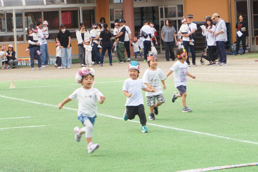 (3歳)みんなで一緒にアロハポーズ♬ (3歳)ゴールを目指してニコニコ笑顔で走ります!