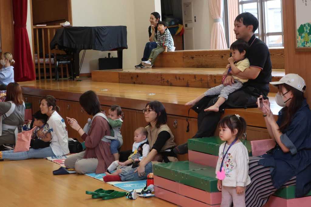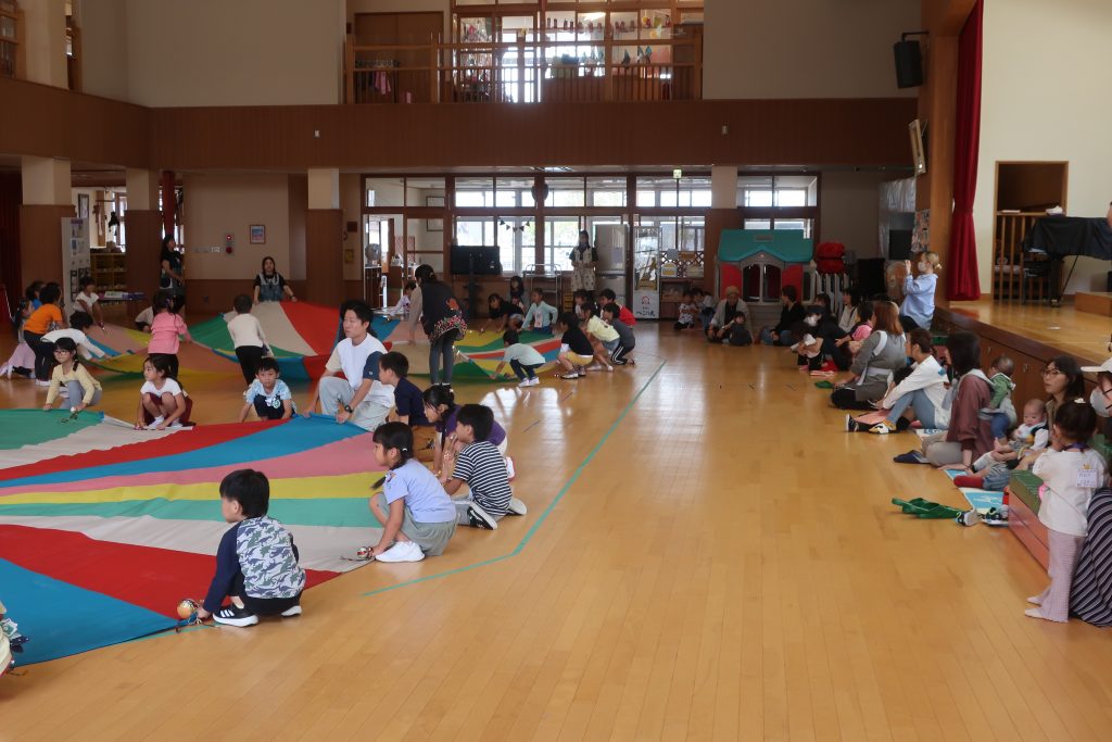 お家の方と一緒に身体を動かしかけっこや宝探しをしたり、園児のダンスやパラバルーン遊戯を見たり…盛りだくさんで、楽しい時間を過ごしました。
