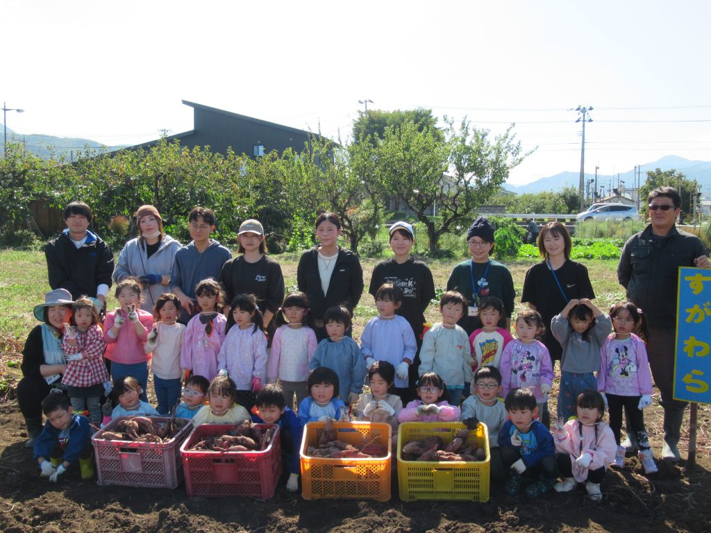 畑の土に触れ、夢中でさつまい掘りを楽しみ、自分達で収穫した嬉しさや喜びを味わうことができました。沢山採れたさつまいもは、焼き芋などで美味しく会食する予定です☆