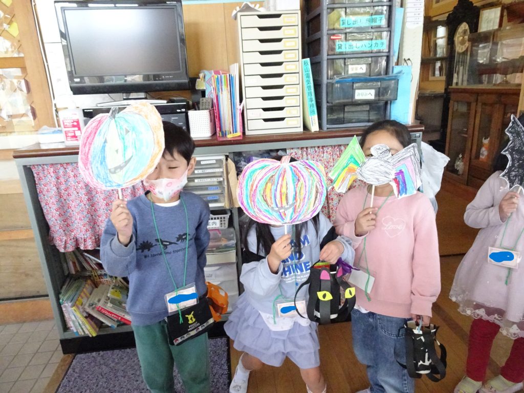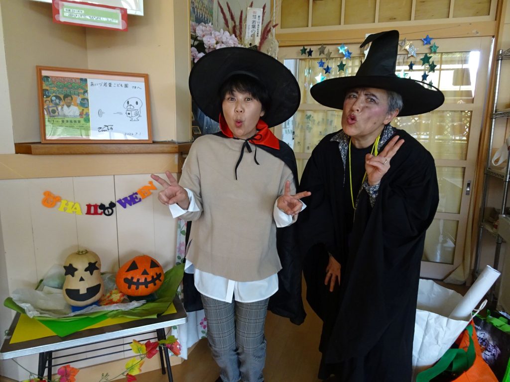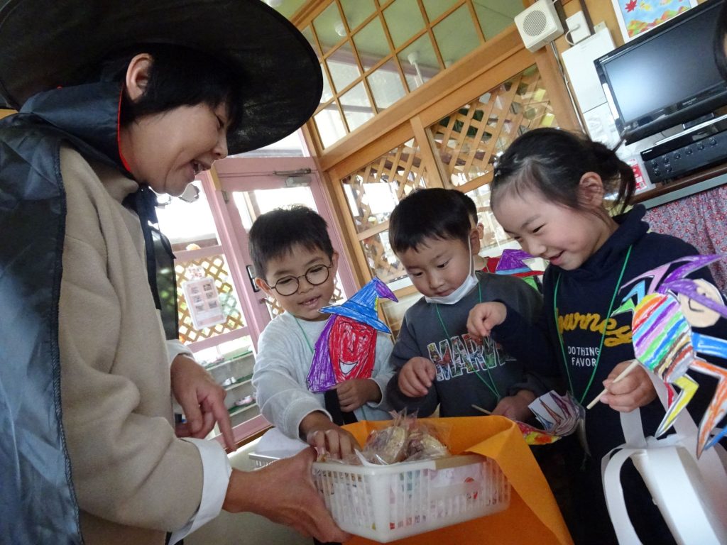 職員室では園長先生が魔女に変身!!みんな嬉しそうにお菓子をもらっていましたよ。