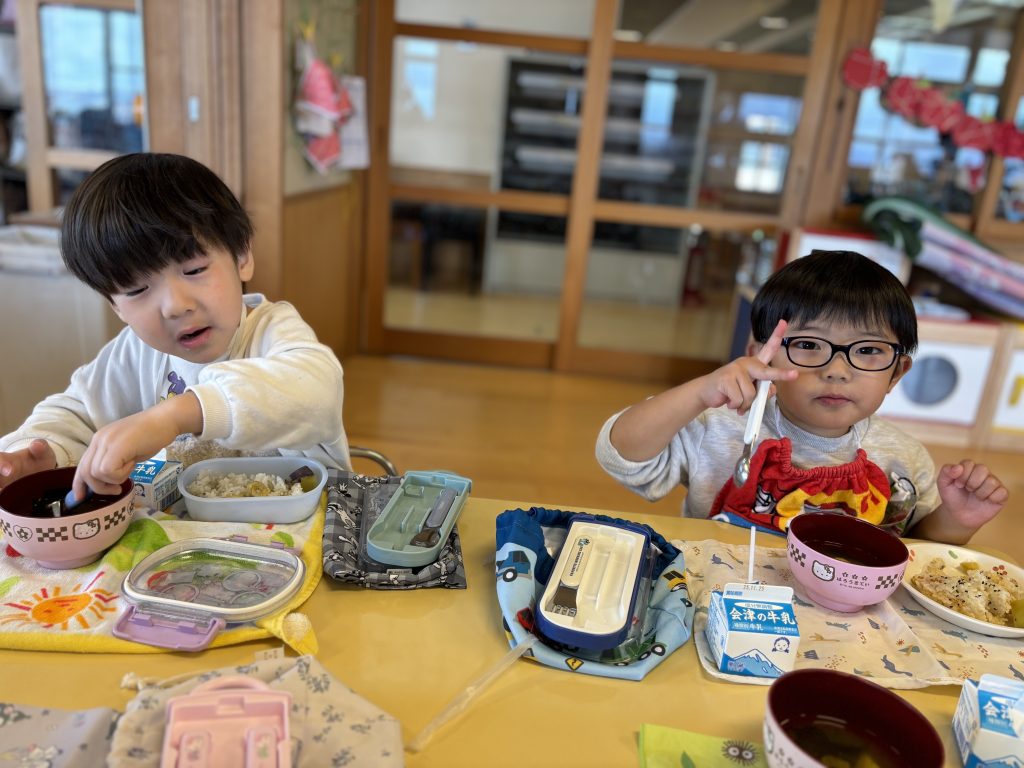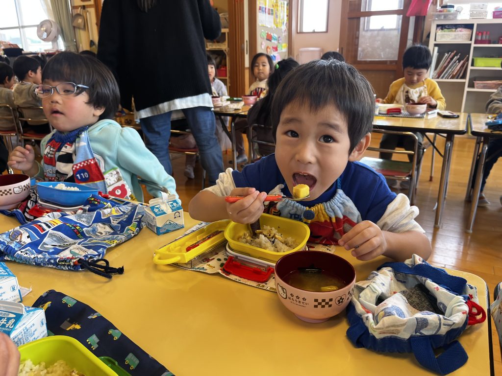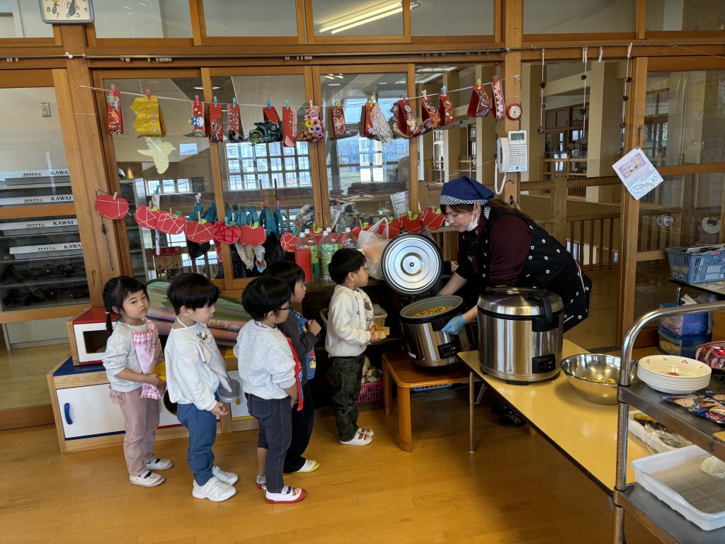 お問い合せ 各種資料一覧 3歳クラス 自然園の栗、おいしいね☆ みなみ若葉 2025. 11.20 3歳クラス 自然園の栗、おいしいね☆ 自然園でたくさん栗を拾いました。 栗をどのようにして食べようか、みんなで話をすると・・・ お子さんから「くりごはん!!」との声が多くありましたので、大量の栗を先生たちで一生懸命剥いて、、、💦(笑) 愛情たっぷりの栗ご飯を作りました(*^-^*) 4歳クラスさんから頂いたさつまいもで、お味噌汁とふかし芋も食べました。 「おかわり~(*^-^*)」「くりごはん、初めて食べた!おいしい!」「もっと食べたいなぁ♡」と、嬉しい声がたくさんありました。 前のページ 一覧に戻る 次のページ