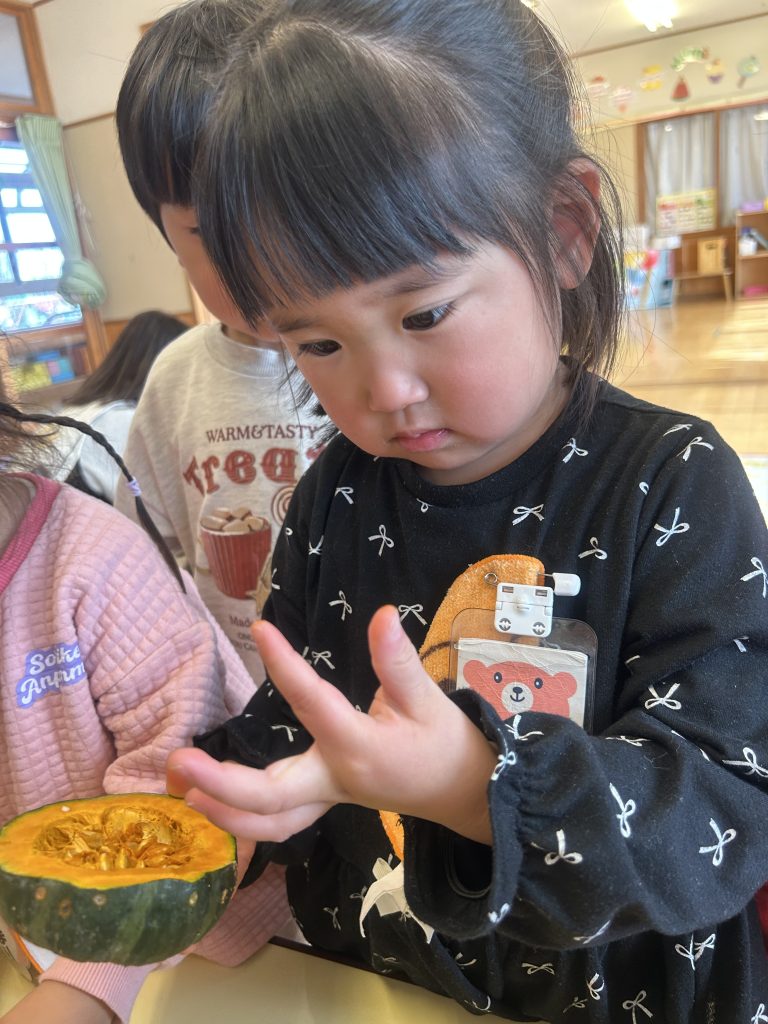 カボチャの種を触ってみたら、指先がペタペタしたよ(・o・)