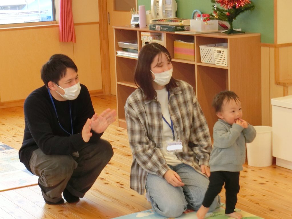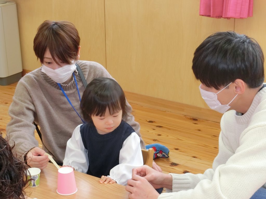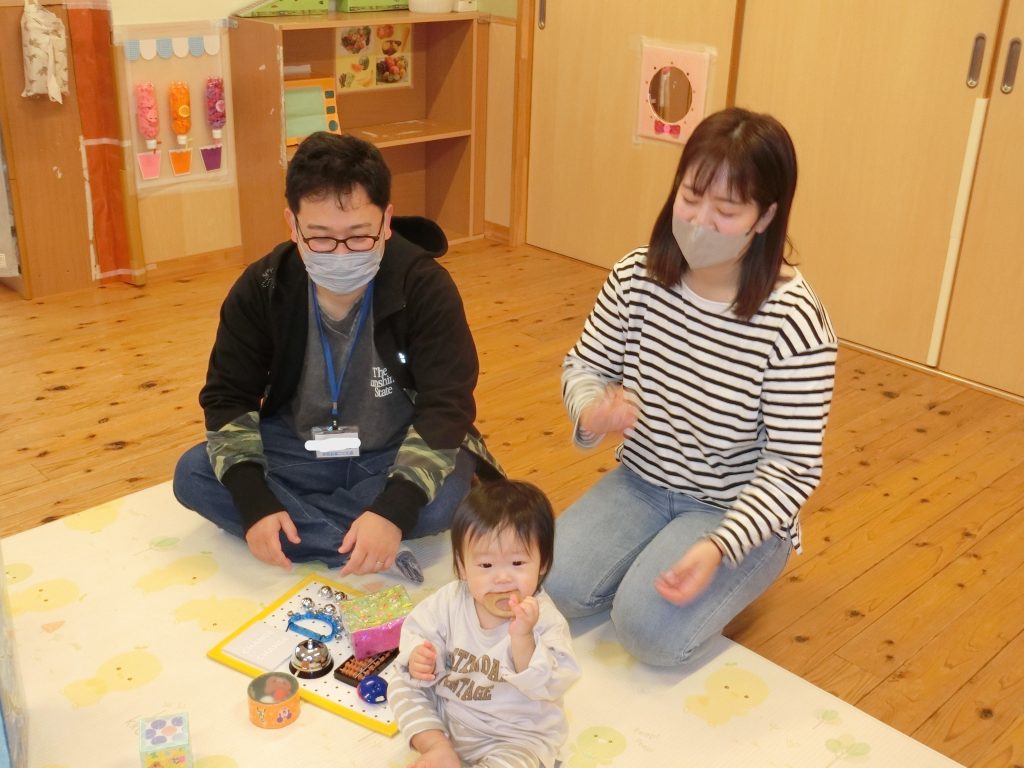手作り玩具にも興味津々で集中して楽しむ姿が見られ、「家庭でも作ってみたいです」などお母さんたちから嬉しいお言葉をいただきました♪