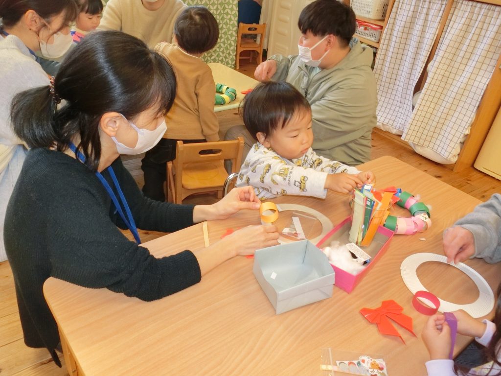 12月9日~12日の4日間の日程で各クラス、ファミリー参加デーを行いました!好きな遊びや製作を楽しみ、親子で楽しい時間を過ごすことができました。参加して頂いた保護者の皆様、ありがとうございました。