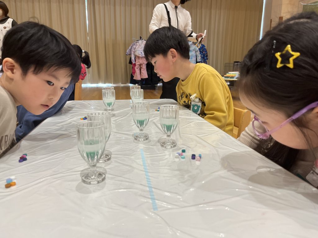 3月11日のキャンドルナイトで灯す『キャンドル』の製作も行いました。溶かして水のように透明なロウが、固まるにつれて白く変化していく様子に驚きじっくりと観察しました。