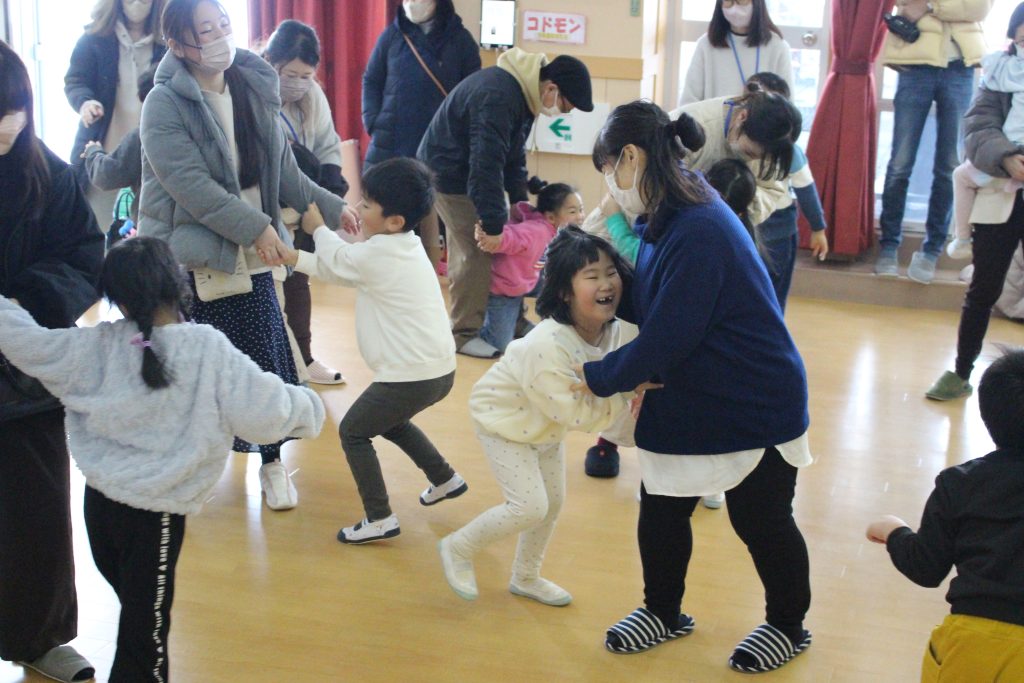 1月30日(金)、園生活最後となる保育参観がありました。今回は園生活最後の保育参観ということで、お別れ会を兼ねて、思い出を振り返ったり、みんなでゲームやダンスをしたりと親子で楽しい時間を過ごしました。