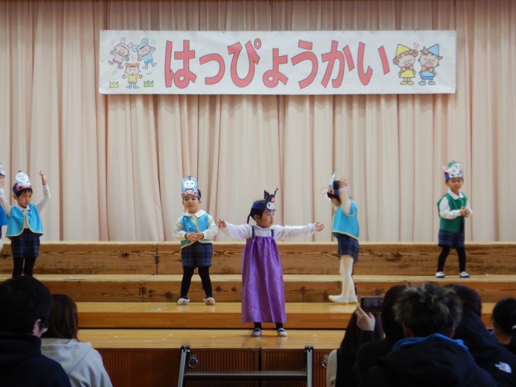 1月24日(土)楽しい発表会を行いました。第一部は3歳クラスの【オールスター音楽祭】第二部4歳クラスの【キラピカステージ】です。