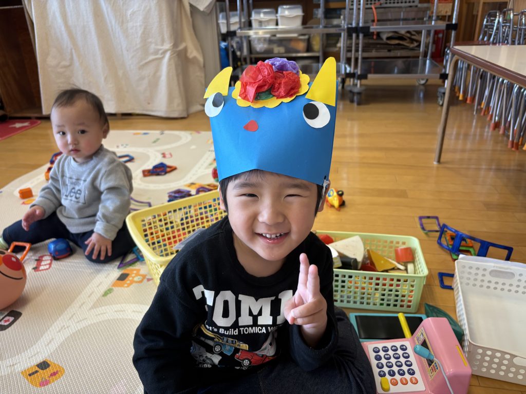 1月29日(木)のカンガルームは、「豆まきごっこ」を行いました。