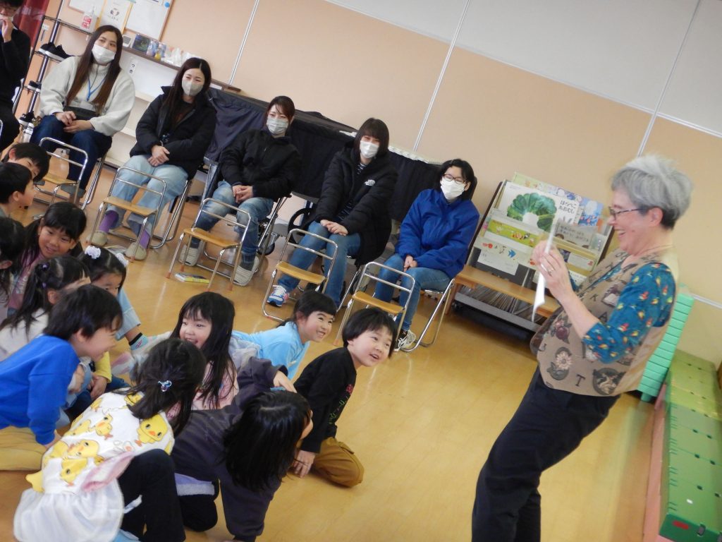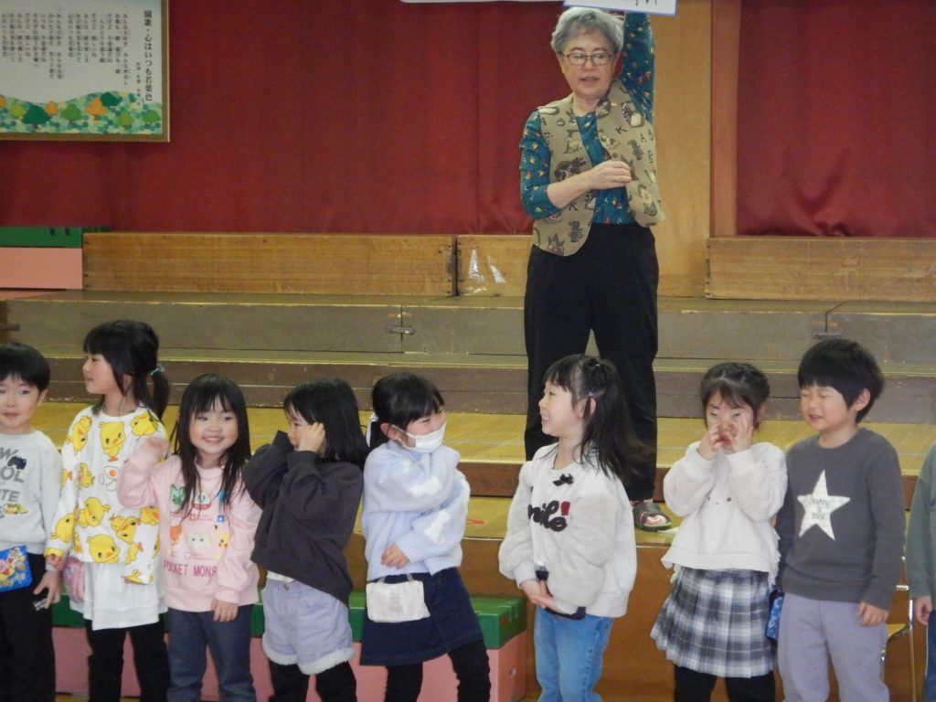 2月16日(月)は4歳クラスの英会話教室参観でした。4月からスタートした英会話教室で、どのように過ごしてきたのか、どんな風に英語に触れてきたのかを保護者のみなさんにご覧いただきました。